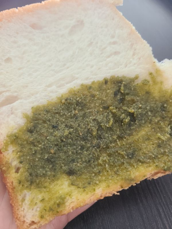 식빵에 페스토를 발라먹었는데 순식간에 없어져요! 모든 빵을 맛있게 만들어 주는 마법!~~~