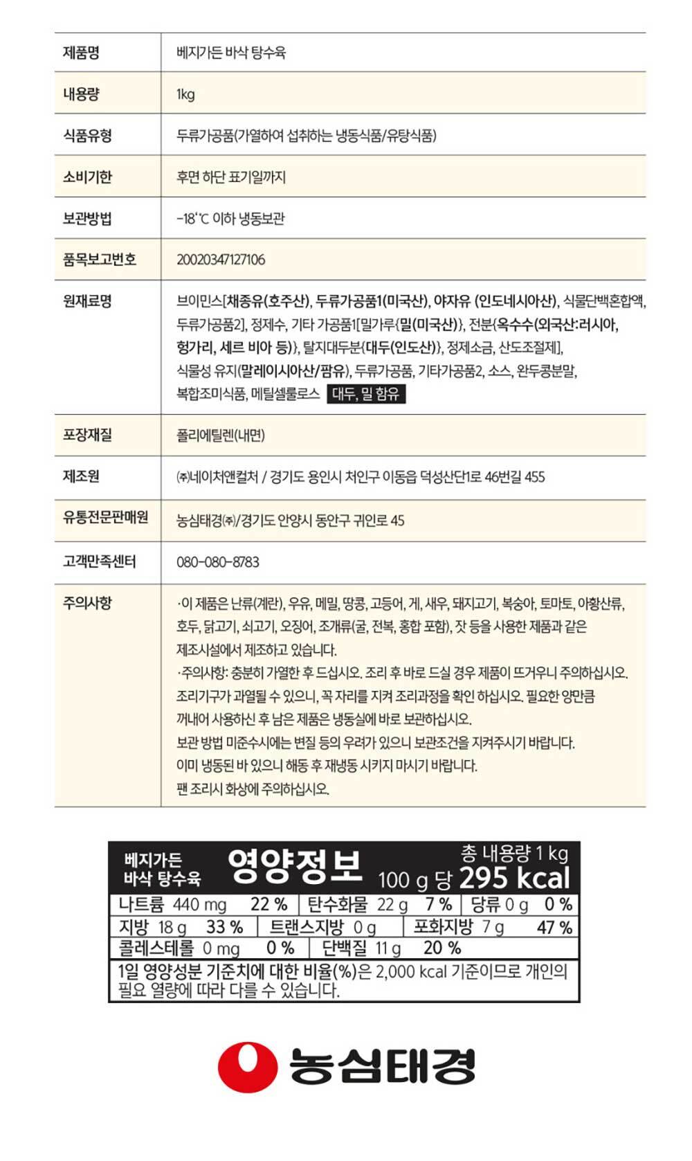 옵션: 바삭 탕수육 1kg 대용량 (식물성 대체육) 1개
