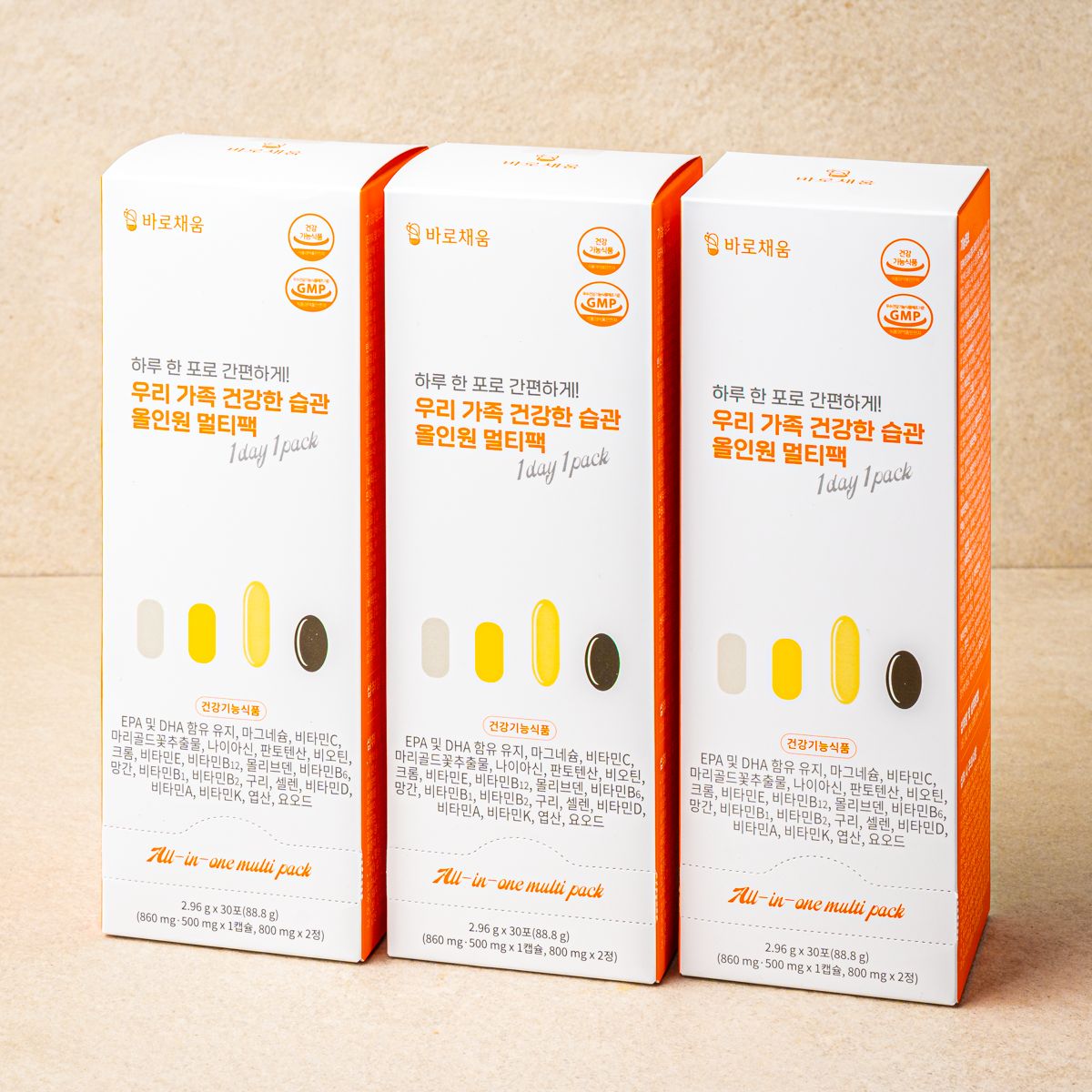 [2+1 특가] 온가족 올인원 멀티영양제 (비타민, 루테인, 비오틴, 엽산, 오메가3 함유) 30포*3박스