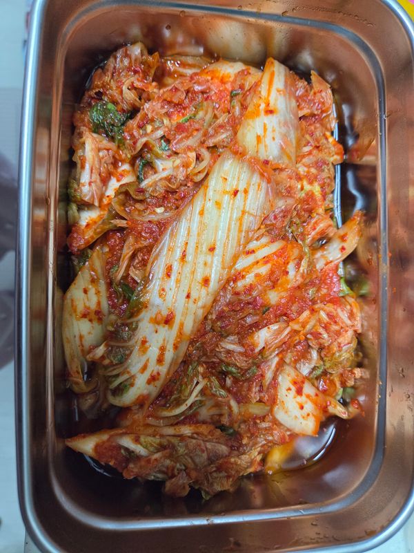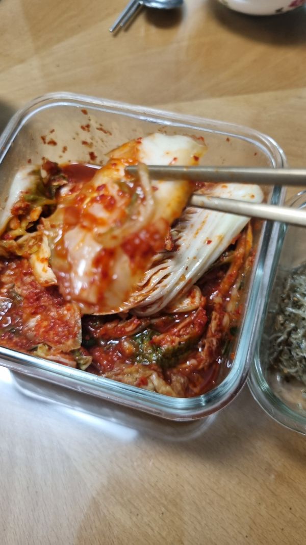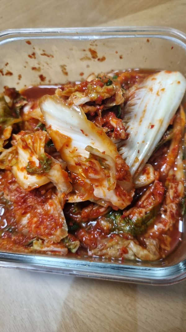 배추가 싱싱하고 맛있어요 조금 짠거 같으나 밥이랑 라면이랑 먹으면 괜찮아요. 양념이 잘 어우러져있어요