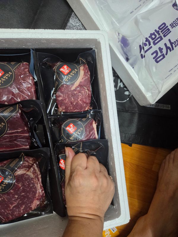 상품을 선물용으로 준 거라 맛은 못 봤지만 보내준 사진으론 고기가 좋아 보이네요^^ 받으신 분도 좋아하고
