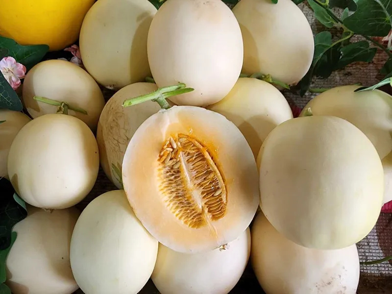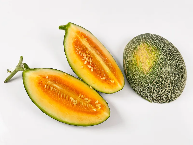 수박과 멜론 중간 정도의 식감으로 특유의 향이 짙어 마니아층이 많은 멜론입니다. 껍질은 초록빛을, 과육은 짙은 주황빛을 띄고 있습니다.