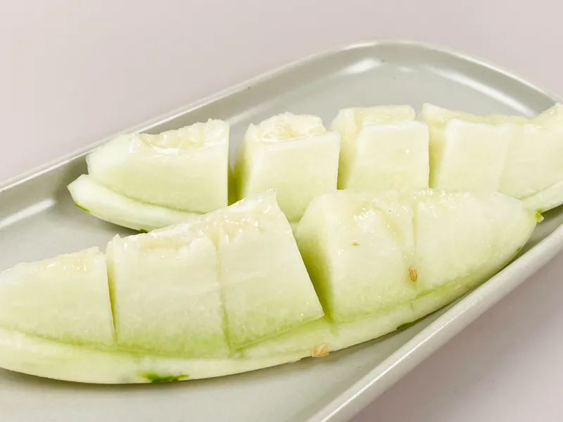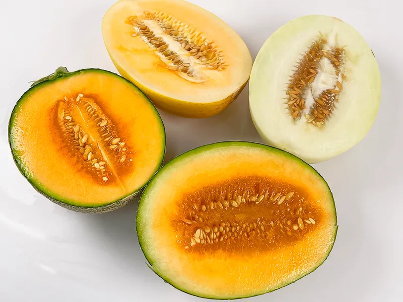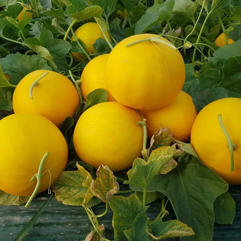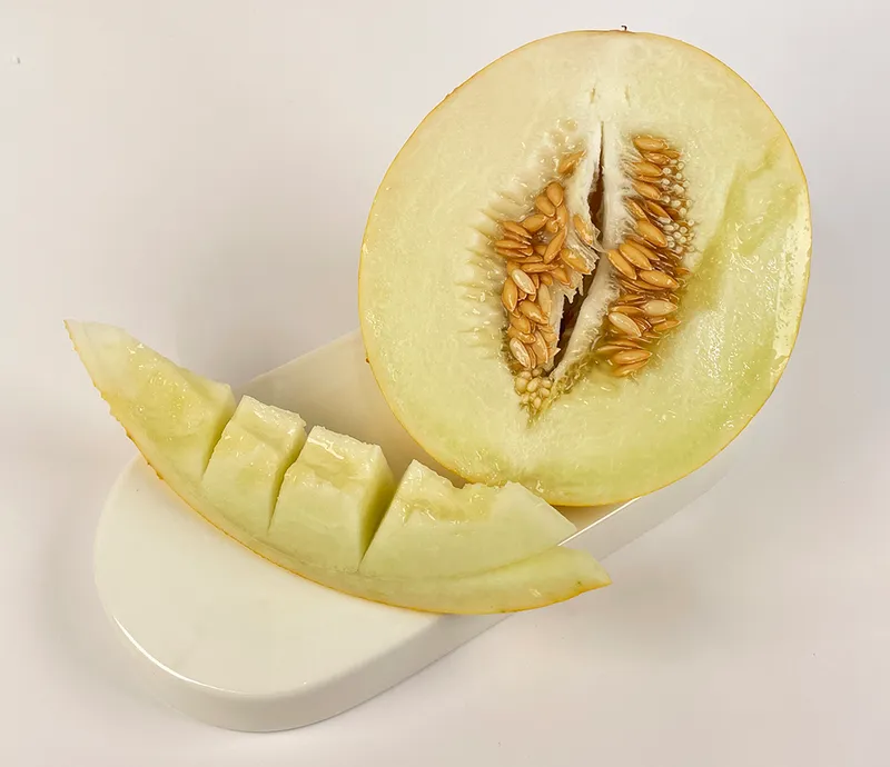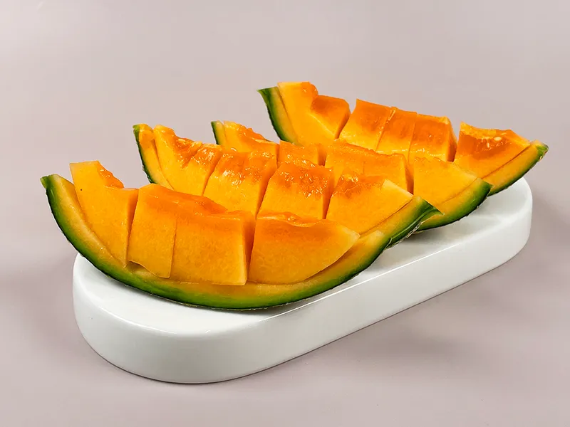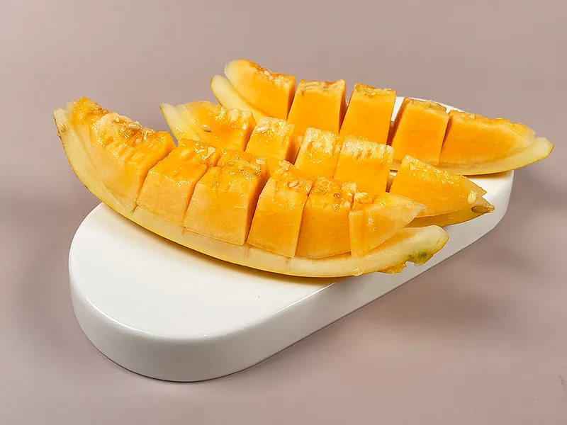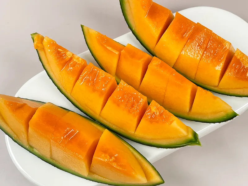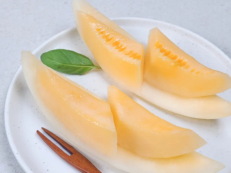 '황제 멜론'이라고도 불리는 프리미엄 멜론입니다. 아삭아삭한 식감과 높은 당도가 매력적입니다. 껍질은 황금빛으로 과육은 옅은 주황빛을 띄고 있습니다.