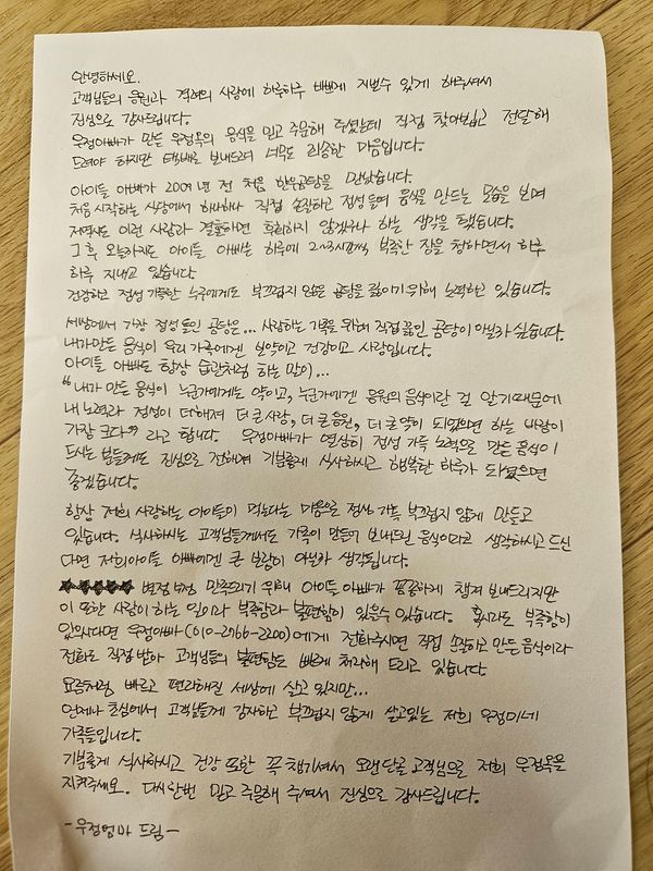 엄마가 꼬리도 부드럽고 국물도 맛있다고 잘먹었다고 하네요. 손편지도 정성스럽게 쓰서 주셔서 감사합니다.
