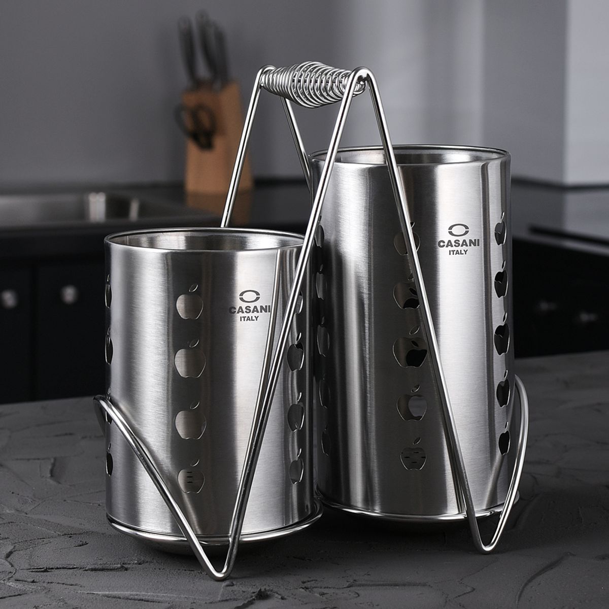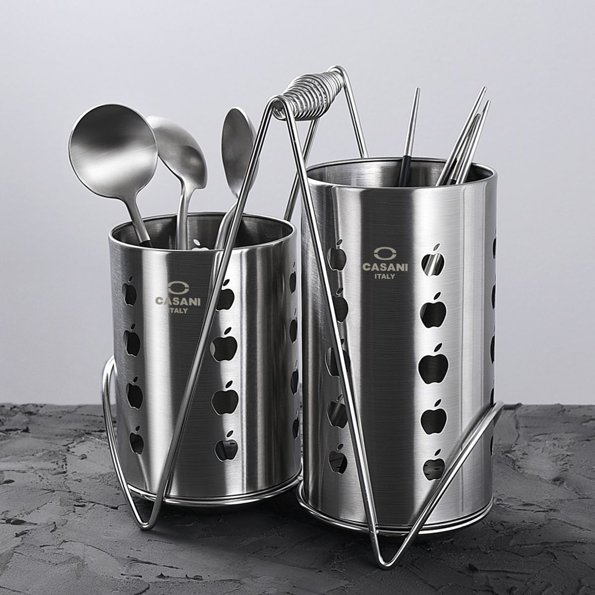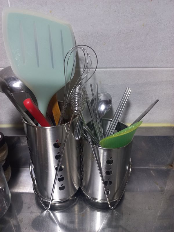 사이즈가 딱 좋으네요. 수저도 넣어도 되지만 전 뚜껑이 없는 불편함 있을거 같어 긴 요리기구로 채우기로 햇어요. 자리차지도 없고 그리 크지않어 유용히 쓸거 같아요. 간편하니 이쁘네요~