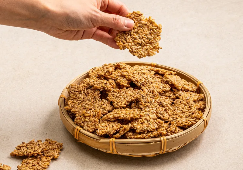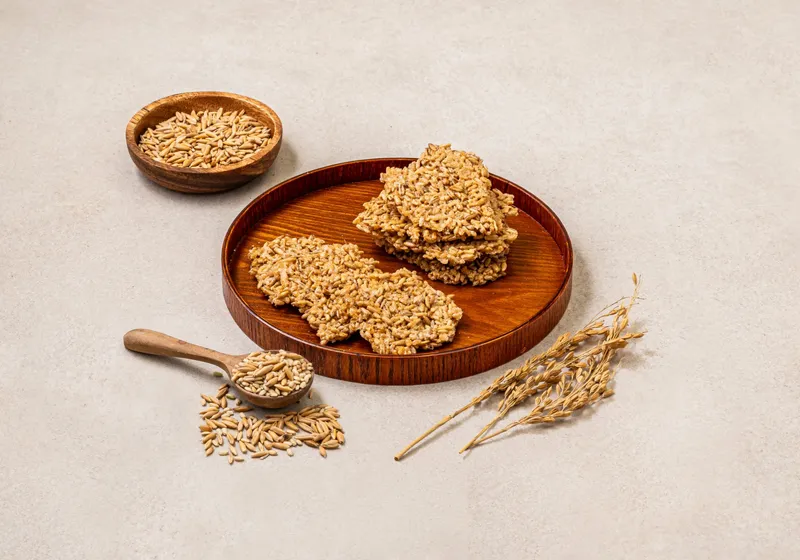 직접 지은 밥을 주걱으로 하나하나 정성스럽게 펴서 만들었어요. 눈으로 직접 볼 수 있을 만큼 살아있는 밥알로 깊은 맛과 풍미를 담았습니다. 귀리와 현미가 들어가 고식이섬유, 고단백질로 건강하게 즐길 수 있는 간식이에요.