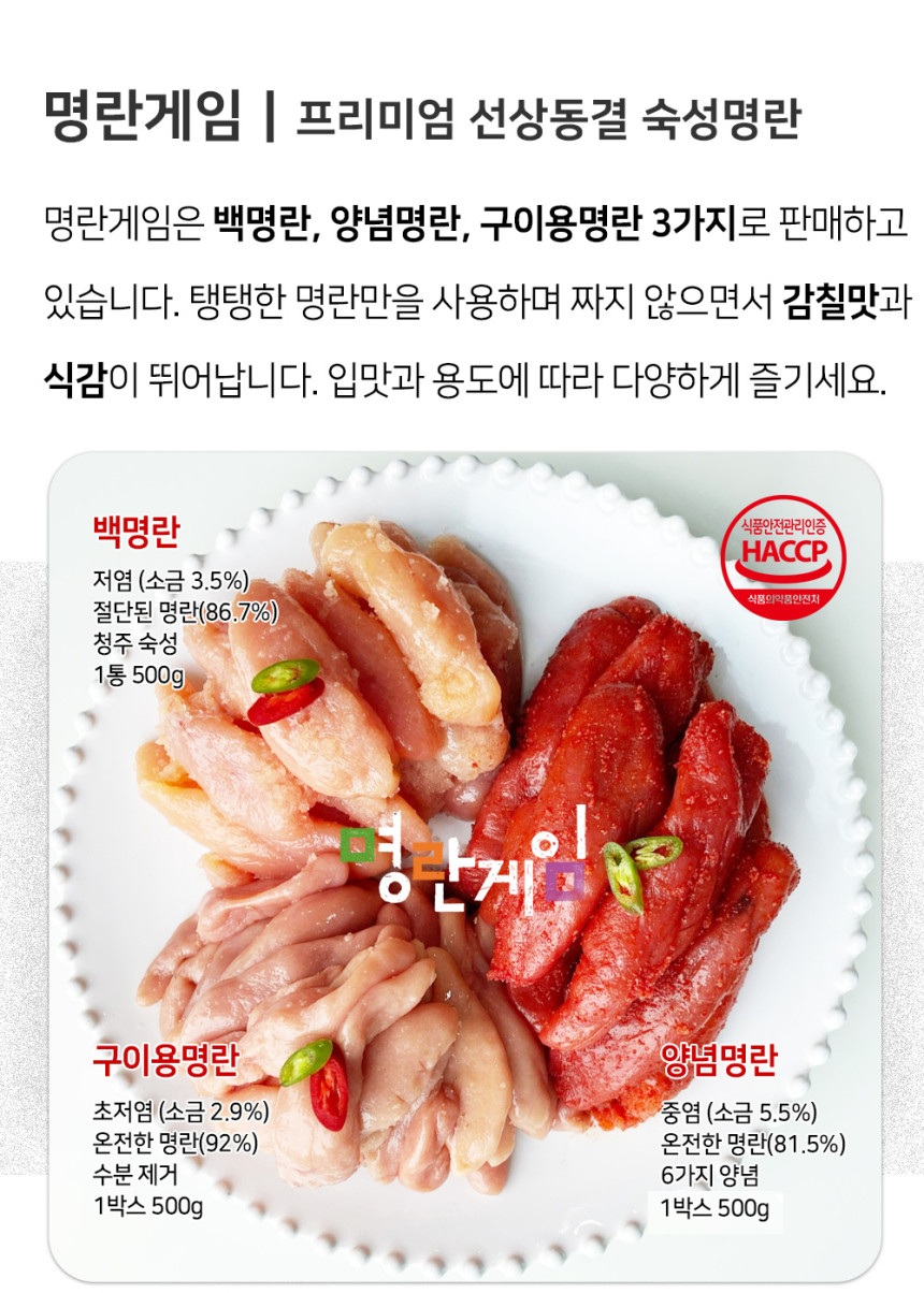 [부산명품수산물인증] 저염숙성 양념명란(명란게임 프리미엄 선상동결 숙성명란) 500g 1통
