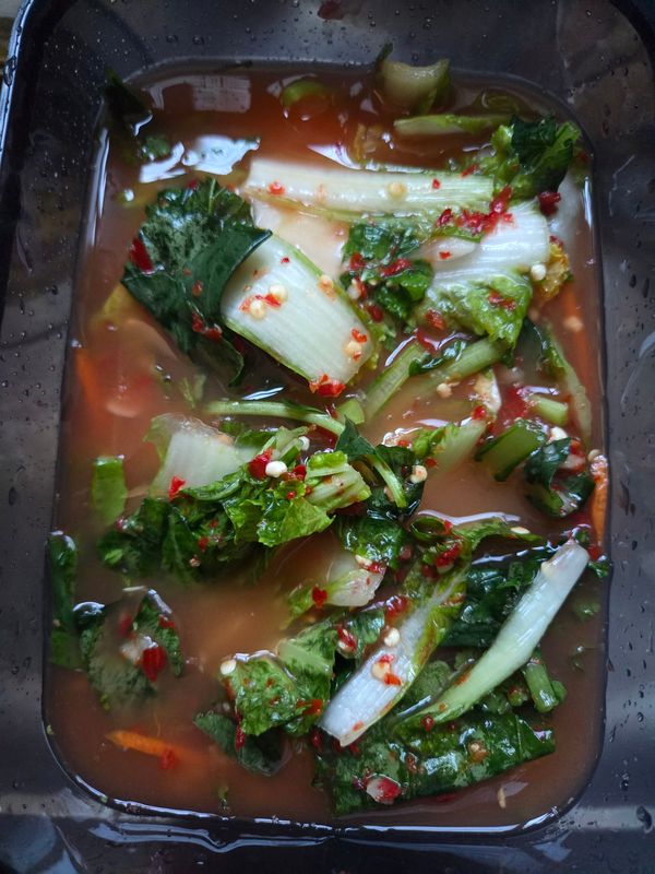 막 담궈 보내주셨네요.맛나게 맹그시랴 바빠서 갈다만 큼지막한 빨간 고추도 서비스로 보내주셨네요~ㅋㅋㅋㅋㅋ 사장님 맛있는 열무 단배추 세일 자주 해주세요