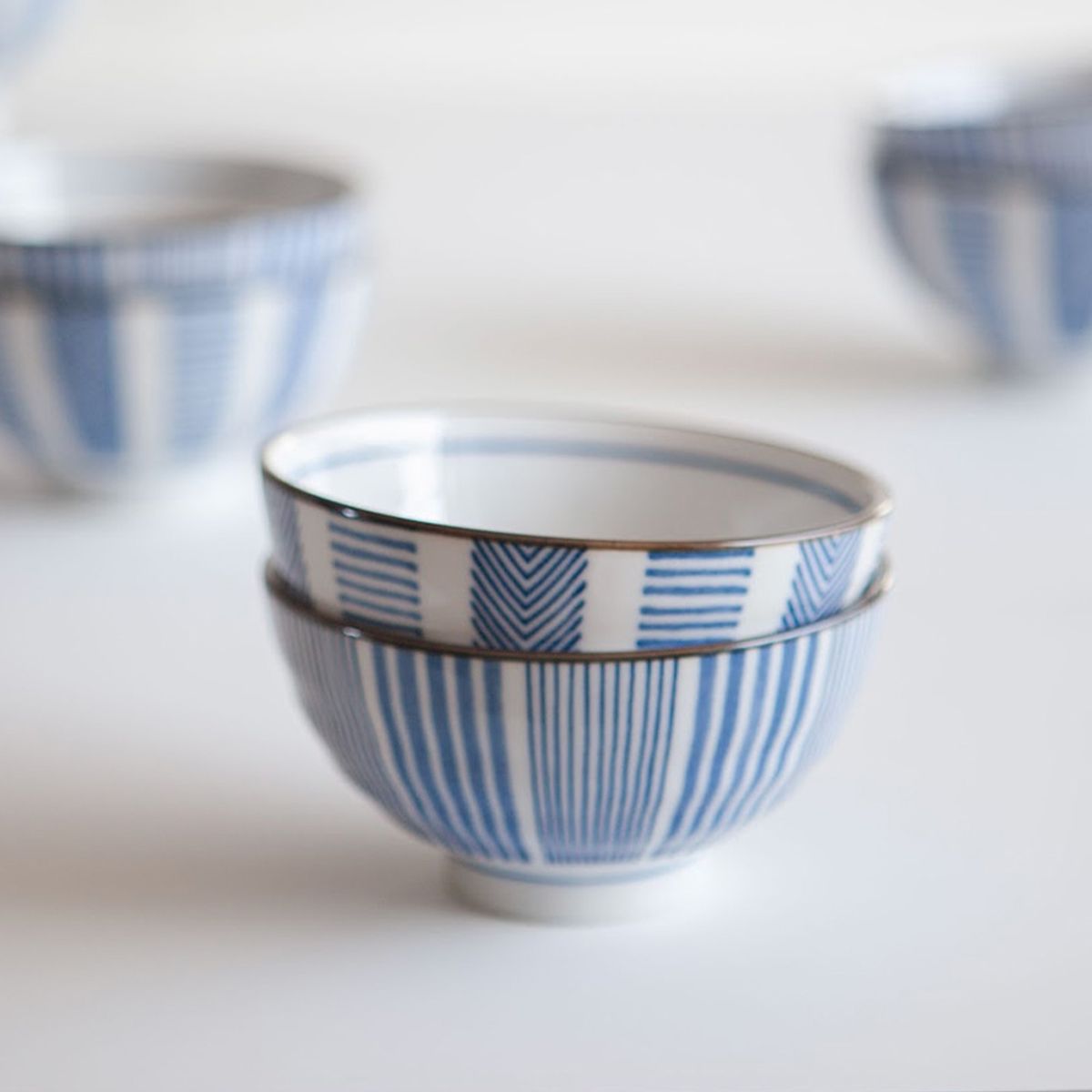 블루 스트라이프 1인 밥공기, 국그릇 세트 MADE IN JAPAN