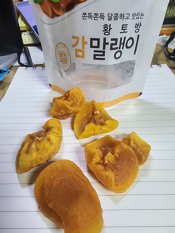 감말랭이를 먹고 맛있어서 또 주문해서 먹고 있네요. 깨끗하게 잘 말려져 있고 씹을 때 달콤하고 쫀든해서 간식으로 너무 맛있어요!