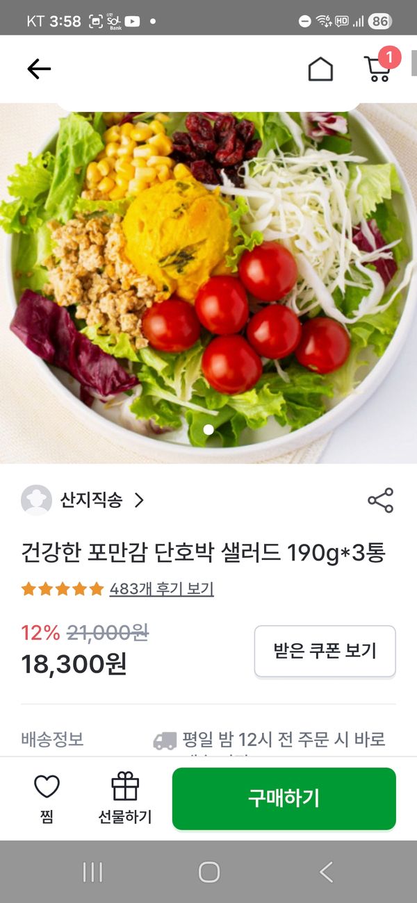 단호박 샐러드 기대 이상으로 신선하고 맛있게 먹었네요 ~~ 방울이 꼬맹이가 3개였으면 하는 아쉬움이 있더라구요 ㅋ 하나밖에 없어서 ~ 재주문해서 먹고 있습니다 맛은 좋아요