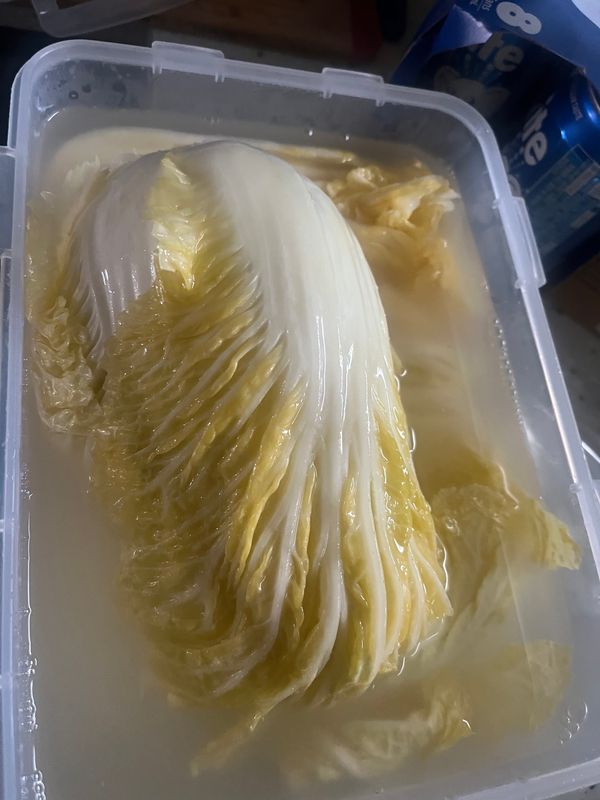 배추가뻣뻣하게 숨도안죽이고 펄펄 살아있다고 지인게 주문해 주었는데 신거워 뭐 이런 백김치가 있나고 합니다