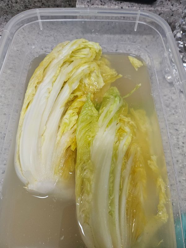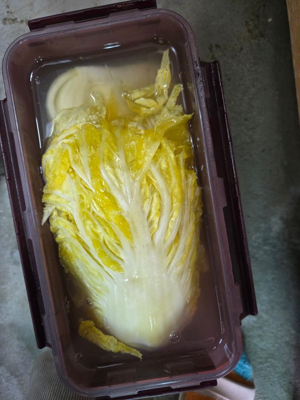 배추가뻣뻣하게 숨도안죽이고 펄펄 살아있다고 지인게 주문해 주었는데 신거워 뭐 이런 백김치가 있나고 합니다