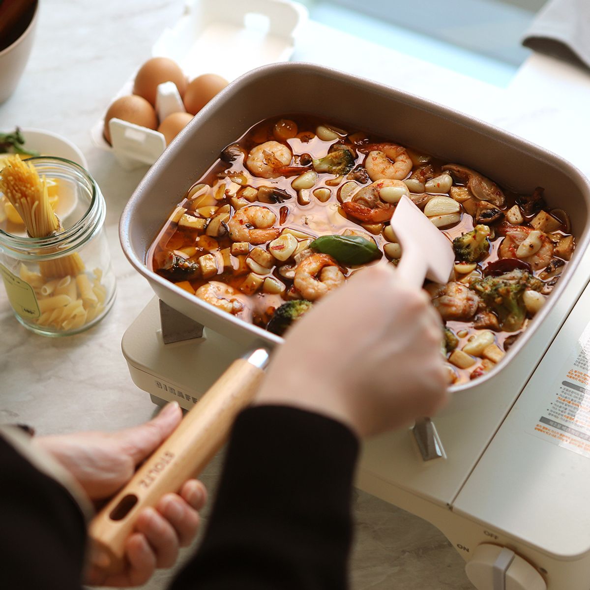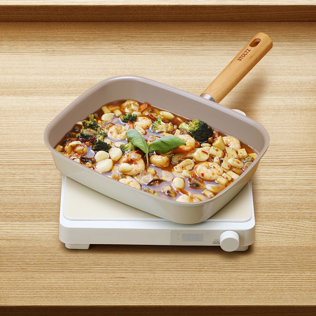 크림 감성 쿡웨어 IH 인덕션 겸용 국내생산 사각팬 프라이팬 28cm