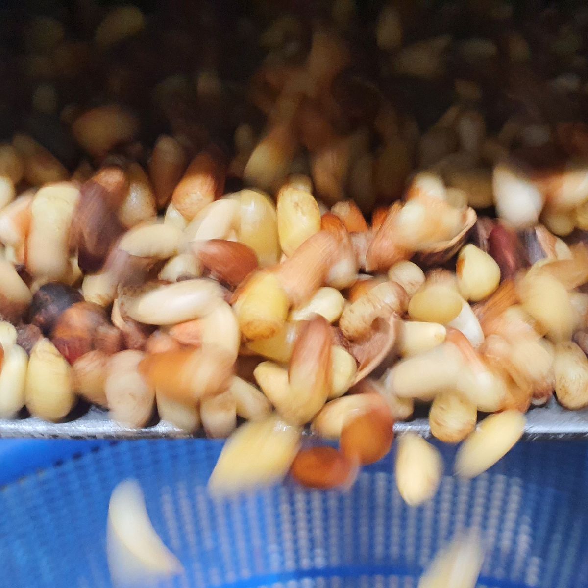 직접 재배한 잣송이를 탈피 후 하나씩 손으로 선별했습니다. 알이 굵고 자연 그대로의 고소한 잣이랍니다.