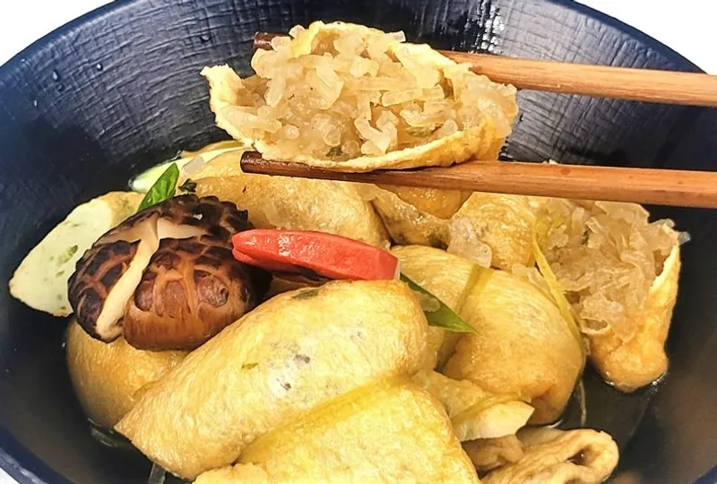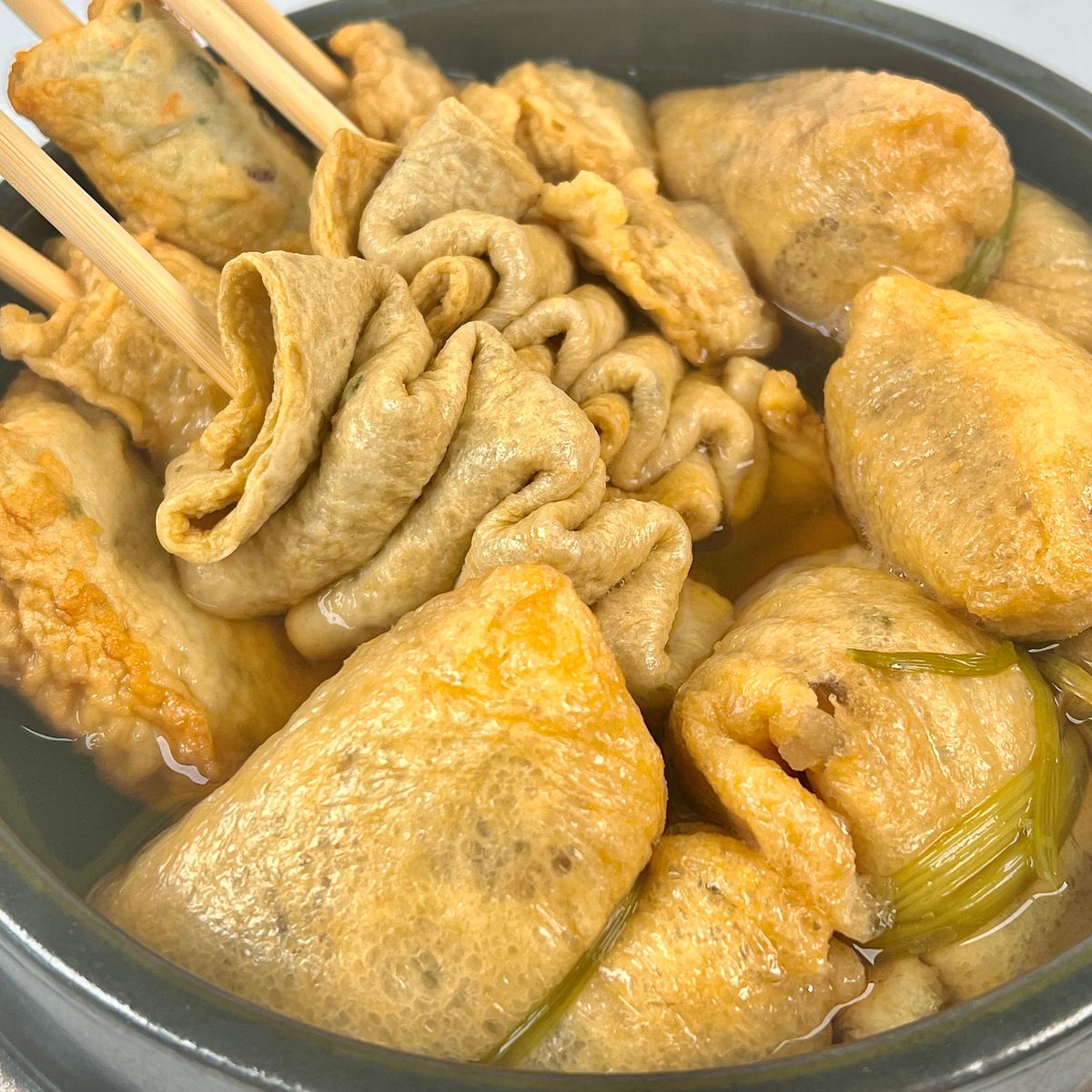 쫄깃한 당면과 각종 채소, 저만의 특제 양념을 함께 버무려 큼직한 유부 속에 푸짐하게 넣었습니다. 정성스럽게 하나 하나 수제로 만들어 더욱 알찬 유부주머니예요. 깔끔한 육수의 맛이 유부에 은은하게 배어 풍미가 두 배!😆