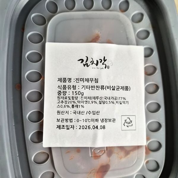 좋아요 제가 진미채를 좋아 하는데 만들면 맛이 안 나서 주문 해봤봤는데 좀실망 서비스로 주신 열무김치도 다 읽어서 주신 마음 감사해요 잘 먹을께요 ^^♡
