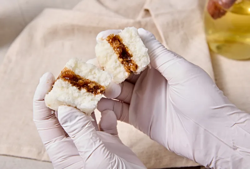 쫀득 향긋한 우유설기 안에 달달한 아카시아 꿀이 가득해요. 꿀이 가득 들어 있는데도 적당히 달아 계속 먹어도 물리지 않는답니다.