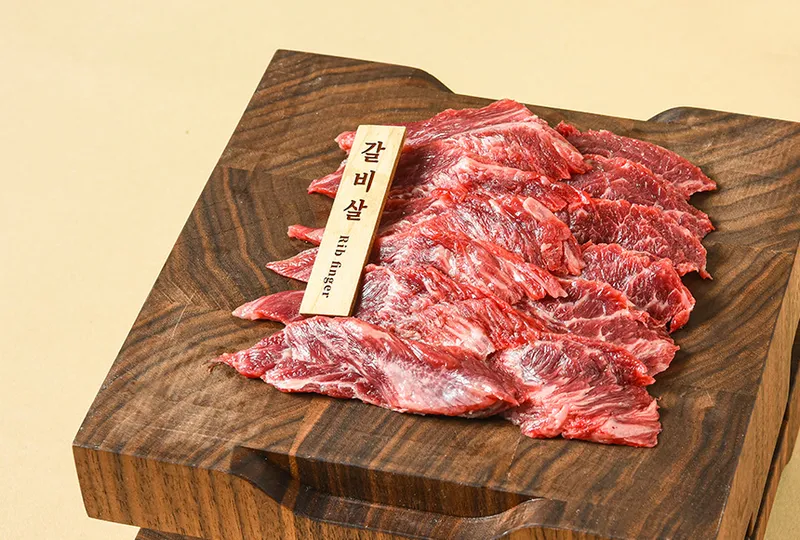 갈비뼈 사이에 있는 살코기만 발라내, 근육과 지방이 여러 겹의 층을 이루고 있어 쫀득한 식감이 좋습니다. 고소한 육향과 육즙이 가득해, 맛이 좋은 부위입니다.