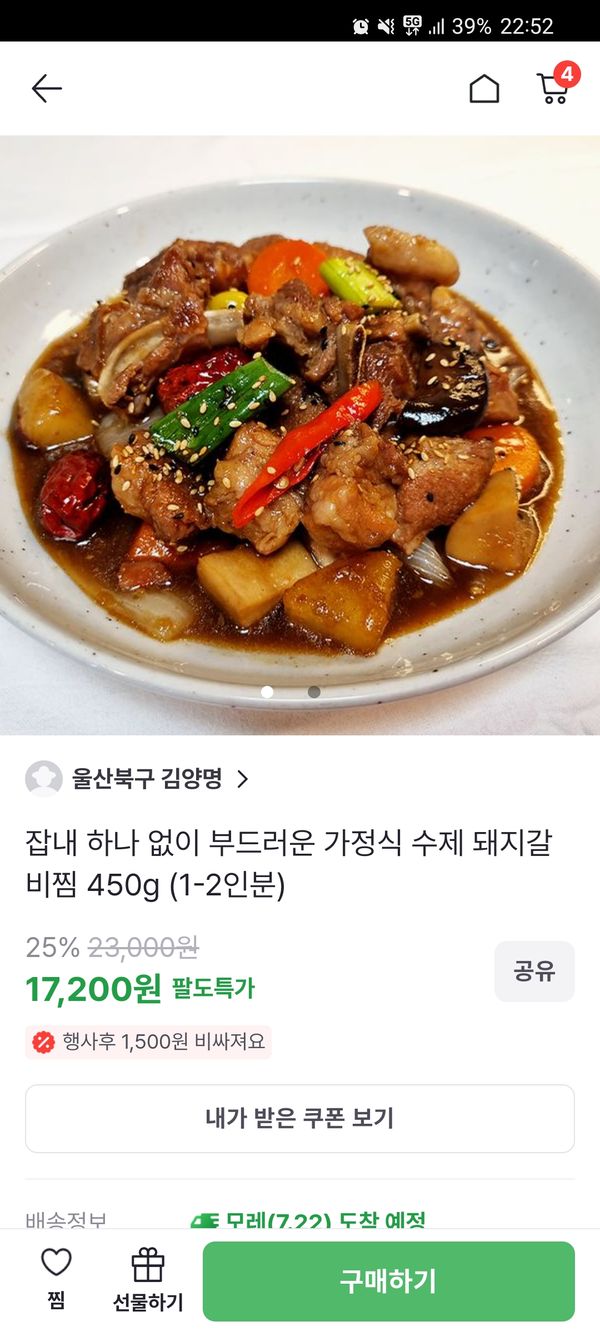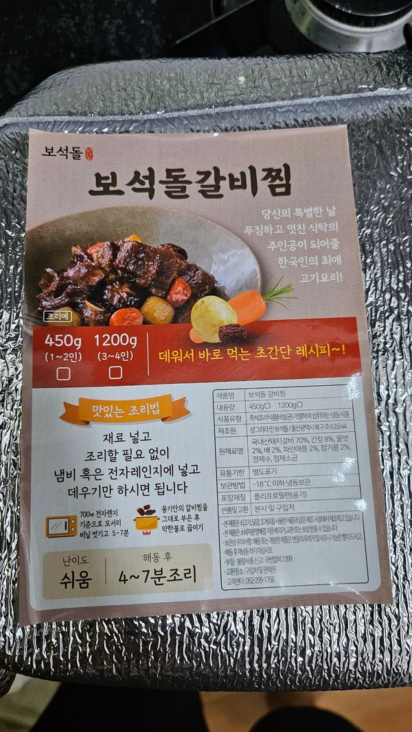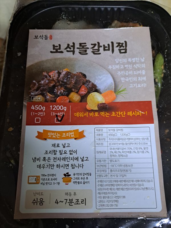 옵션: 돼지갈비찜 1200g (3-4인분)