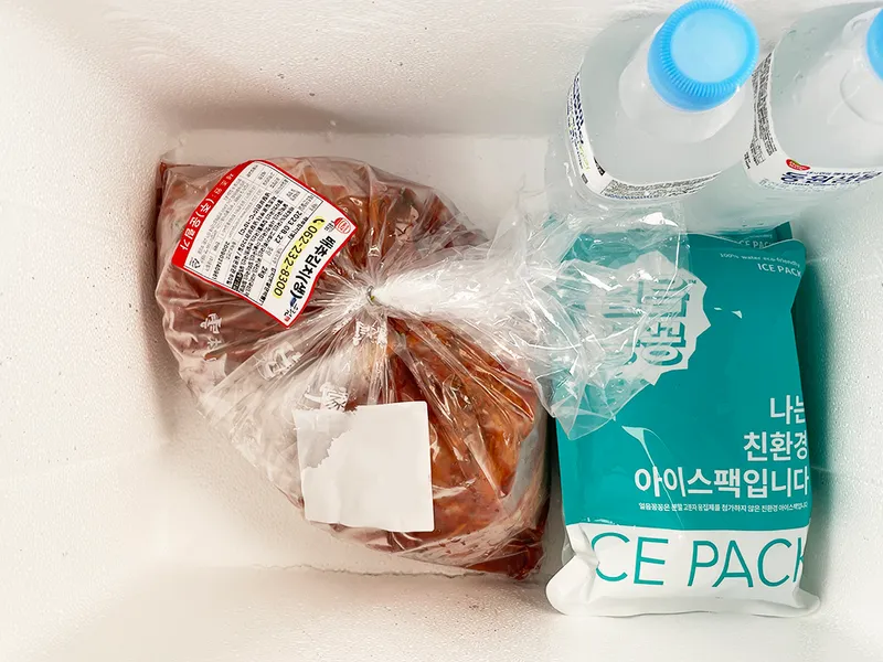 아이스박스에 아이스팩과 얼음 생수를 동봉해 드립니다.
