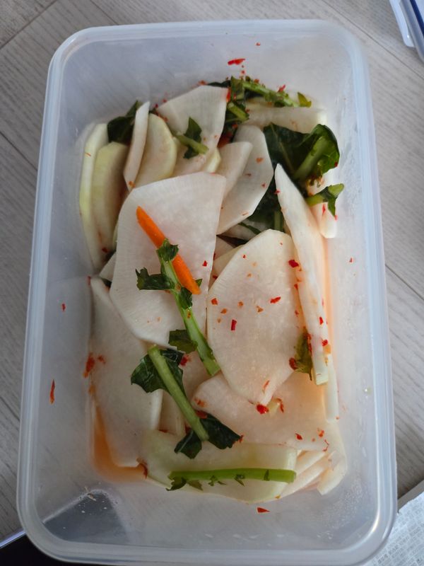 가을부터 겨울내내시켜먹고있는 무김치.내입에 딱이에요.무가 아삭하고 시원하니맛있어요.
