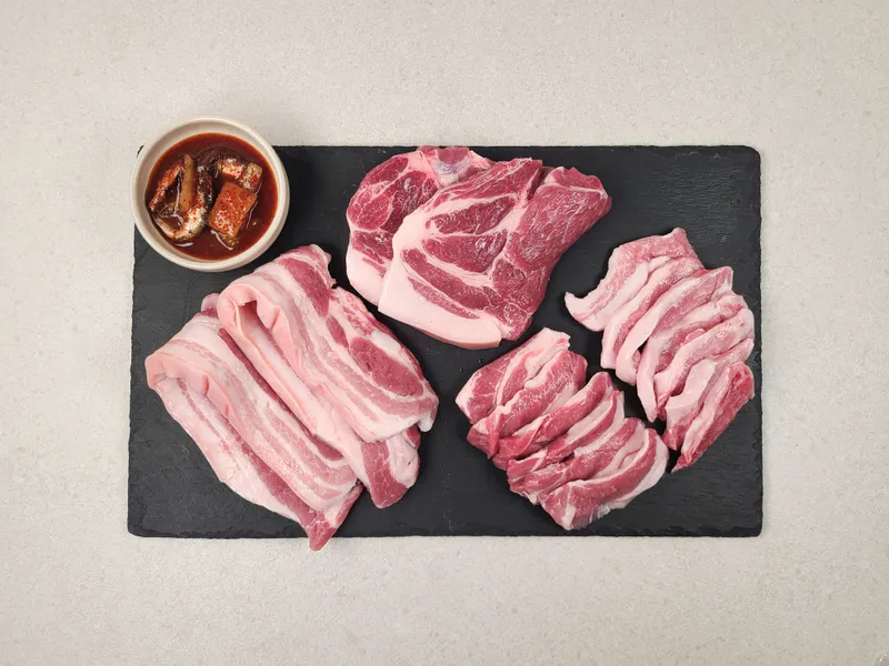오겹살의 풍부한 육즙, 목살의 담백함, 항정살의 쫄깃함, 가브리살의 부드러움까지 흑돼지의 매력을 부위별로 골고루 즐길 수 있도록 알차게 담았어요. 어떤 부위를 먼저 먹어도 후회 없는 조합이랍니다. 특별한 날, 특별한 고기로 차려내는 한 상을 완성해 보세요.