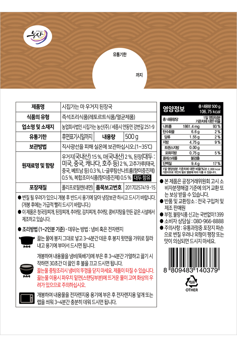 시집가는농산 시집가는 우거지된장국 500g x 10팩 / 바르겟
