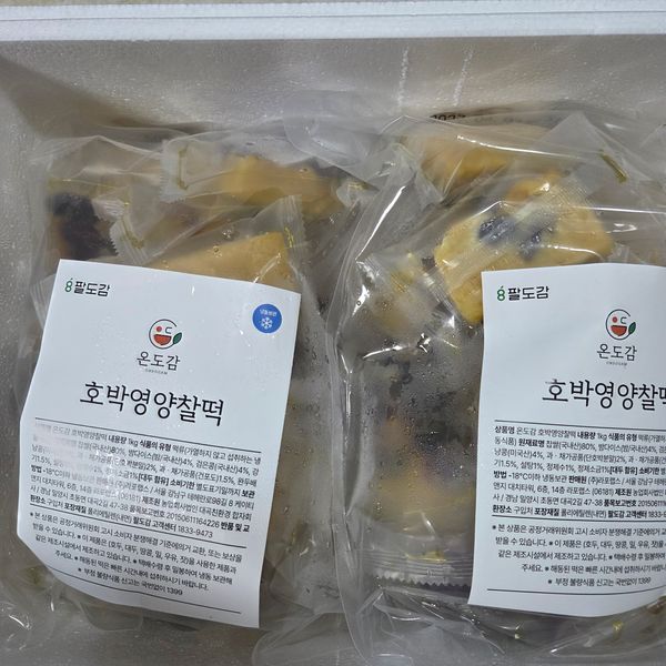 떡이 냉동상태로 왔으나 자연해동시키니 호박떡은 말랑거리던데 여양떡은 딱딱 했어요 이미 개봉한상태라 렌지에 돌려서 먹으려구요