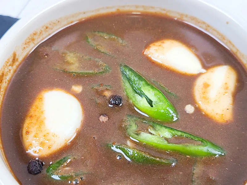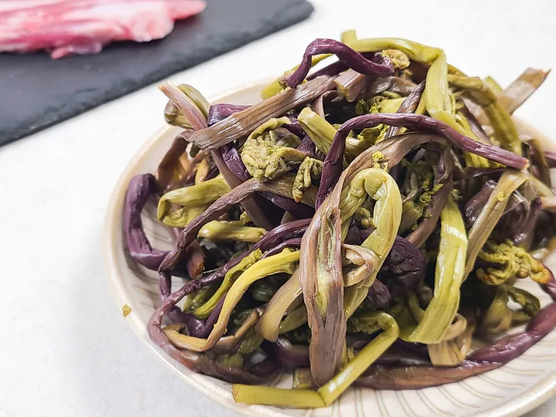 멸치젓 소스의 원조인 제주의 맛 가득한 멜젓과 제주산 고사리를 함께 담아 준비했어요. 노릇하게 구운 흑돼지 한 점을 멜젓에 찍은 뒤 고사리와 함께 먹으면 제주의 참맛을 제대로 느껴볼 수 있죠!