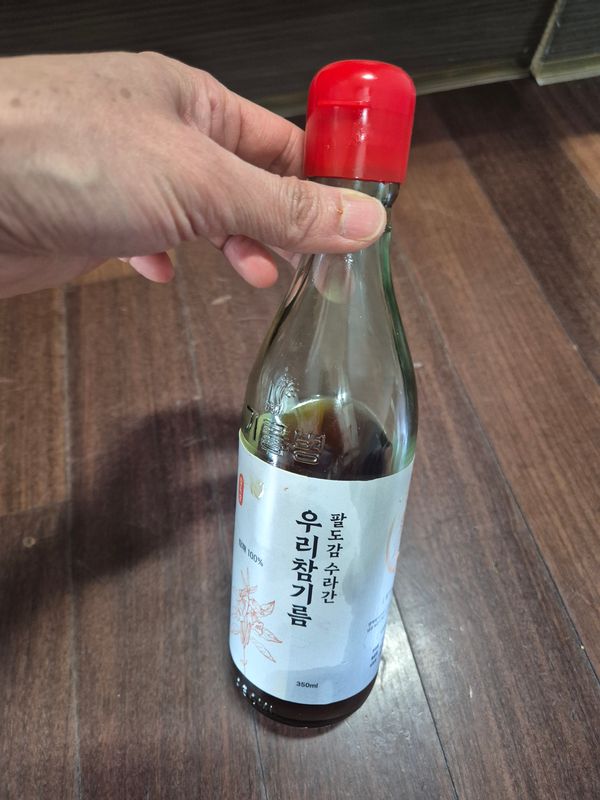 참기름 맛은 고소하고 깨끗하니 좋아요 근데 뚜껑 쪽에서 기름이 조금씩 새는 데요 뚜껑이 쫌 헐거운거 같아요
