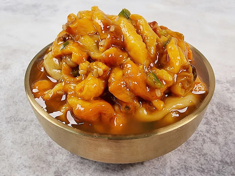 멍게의 불필요한 수분을 쫙 빼서 멍게 특유의 향과 감칠맛을 살렸습니다. 오로지 소금으로만 양념을 해 멍게만의 달콤 쌉싸름한 맛을 오롯이 맛보실 수 있습니다.