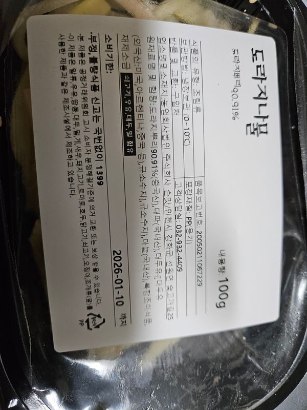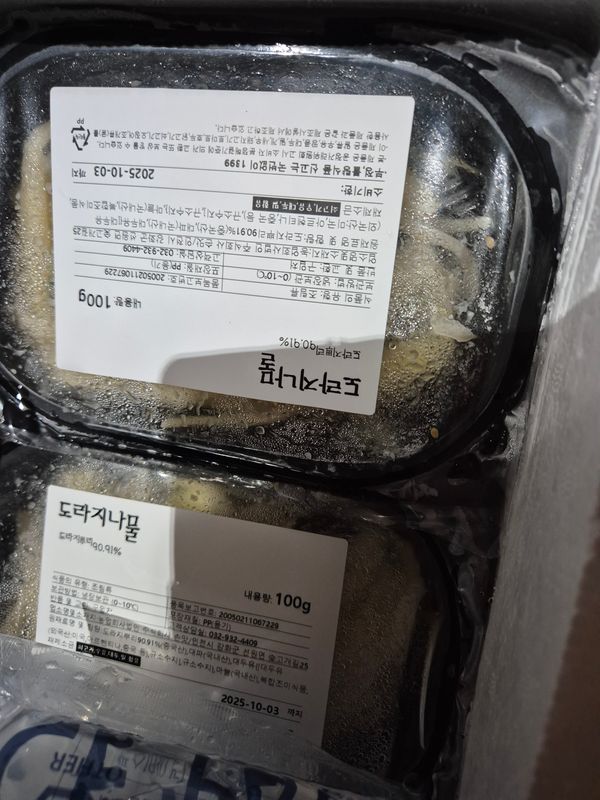 쌉싸름한 풍미 살린 도라지 나물 200g 아이스팩이 다녹고 터져 도착함.