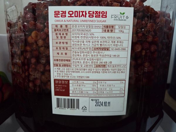 매실을 계속담았는데 올해는 오미자를 담을려고 찾는중 오미자청발견하고 구매했어요 맛나게 잘먹을께요