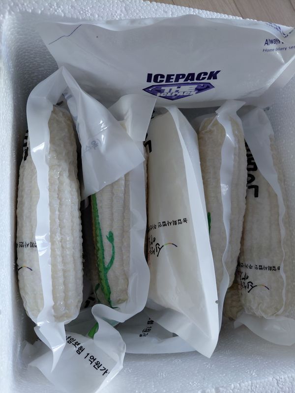 옥수수가 작아도 너무 작아서 실망이네요. 옥수수 알은 잘 여물고 첨가물 없이 쪄서 냉동한거라서 담백해요. 조리방법,유통기한이 표기가 안되어 있네요. 옥수수가 워낙 작다보니 먹어볼게 없어서 아쉬워요.