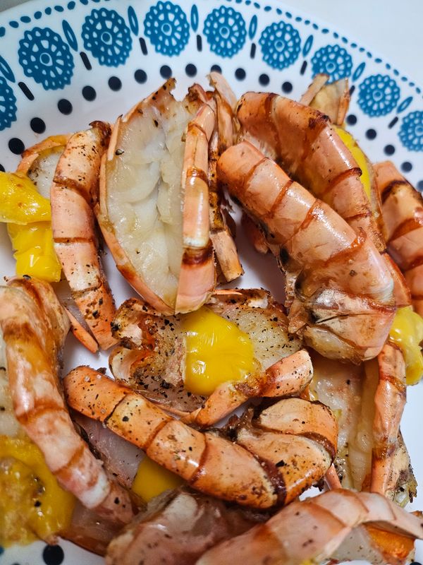 블랙타이거 새우 버터플라이를 받아서 에어프라이기에 돌려 먹었습니다. 사진과는 다른 모습이지만 그래도 살도 맛있고 버터를 발라 부드럽고 향도 좋습니다. 맥주 한잔에 아주 잘 먹었습니다.