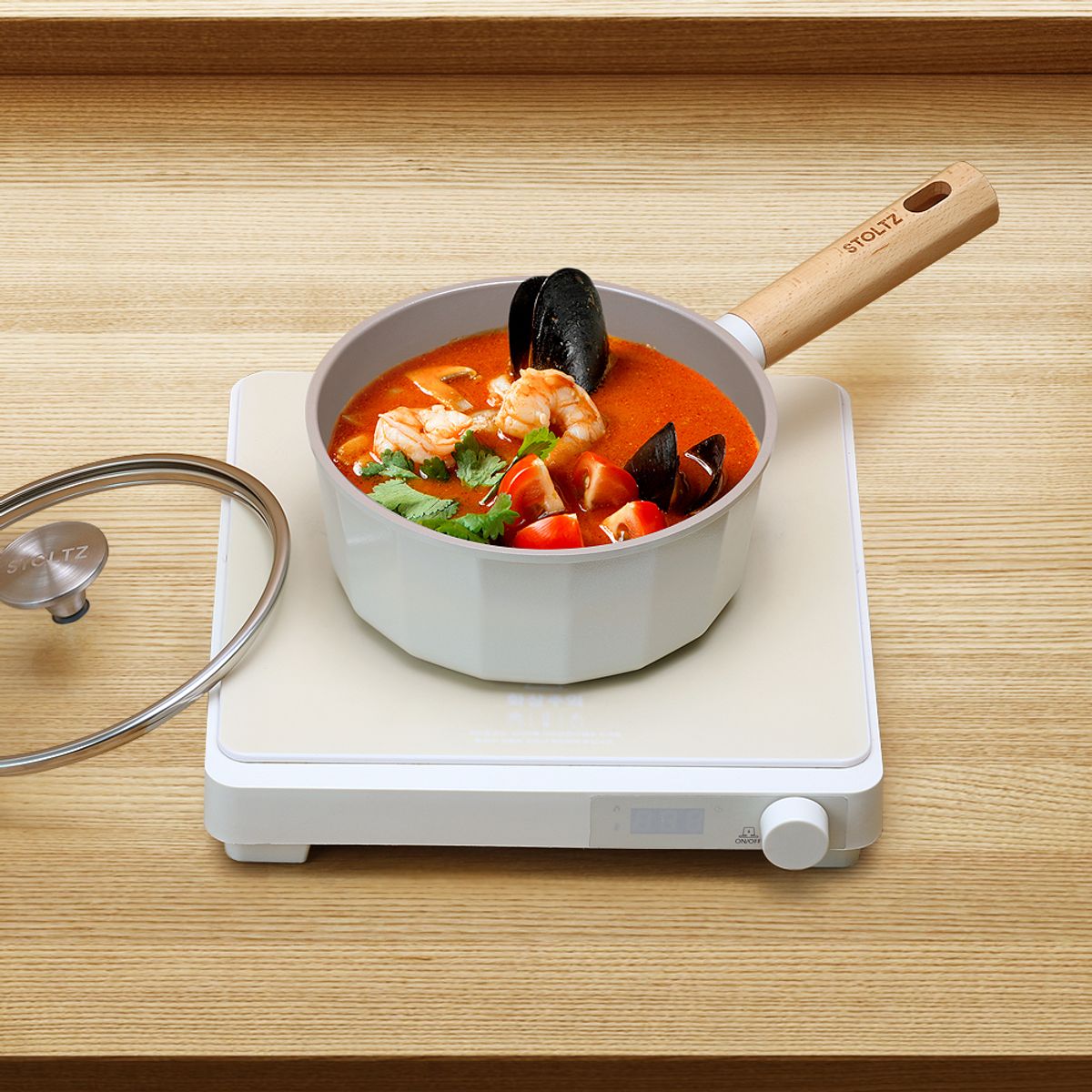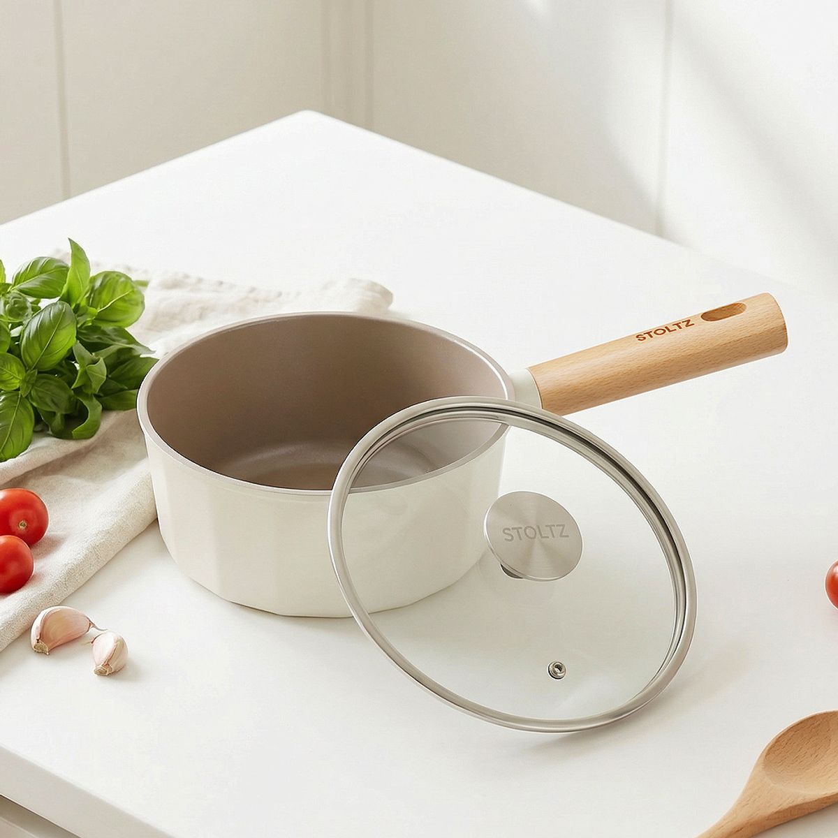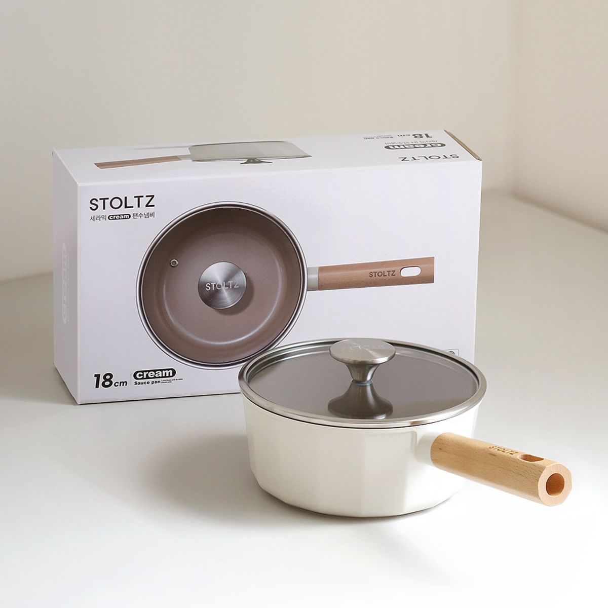 크림 감성 쿡웨어 IH 인덕션 겸용 세라믹코팅 편수 냄비 18cm