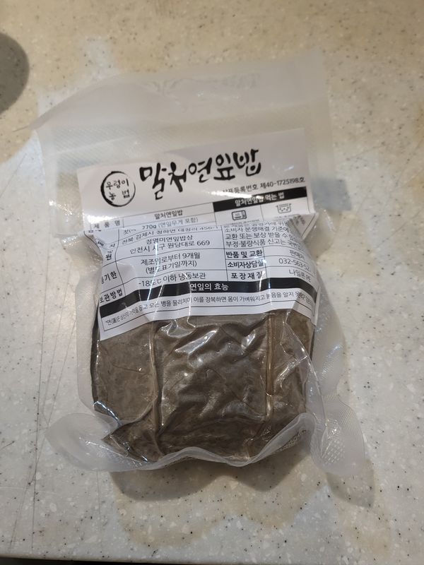 생각보다 양이 많아요. 둘이서 반찬이랑 연잎밥 한개면 딱 맞을듯요. 보내주신 연잎 찻물이 좋아 한번 말려봅니다. 차 끓여도 좋을것 같네요.