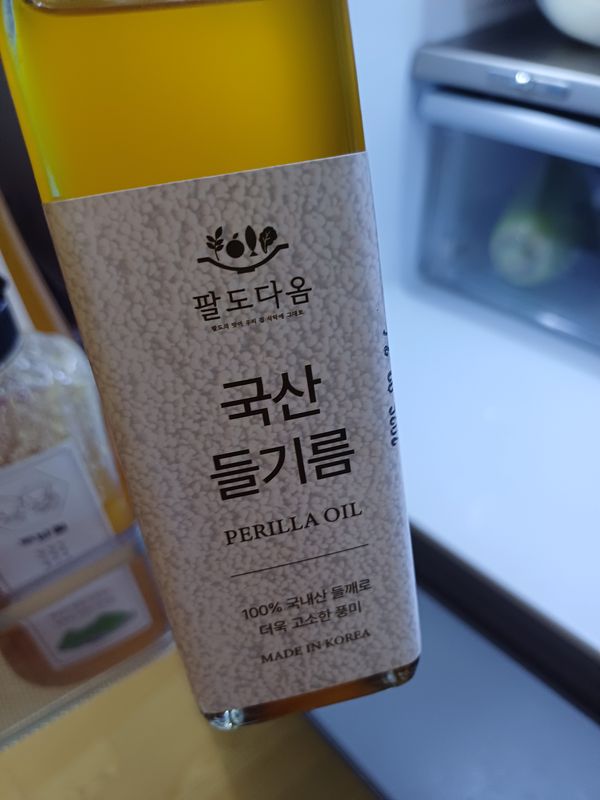 너무너무 맛있거 진한 들기름향입니다. 생으로 먹는 요리에만 사용하세요~ 지지고 볶기에는 온전히 들기름향과 맛을 느낄수없어서 아깝더라고요~ 저랑 엄마는 요거 맛본 후로는 다른데서 국산국산하는거 안믿어지더라고요.. 이게 정말 국산들기름이구나.. 하는 맛입니다^^