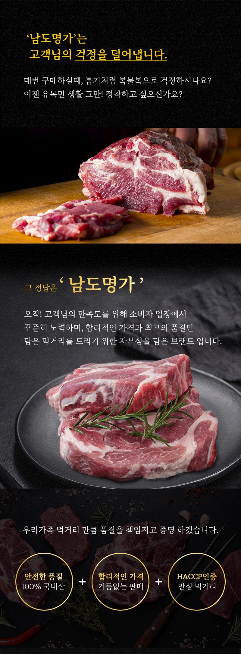 [남도명가] 한돈 녹돈 생목살 500gx2팩(총1kg/1등급/보쌈용/냉장)
