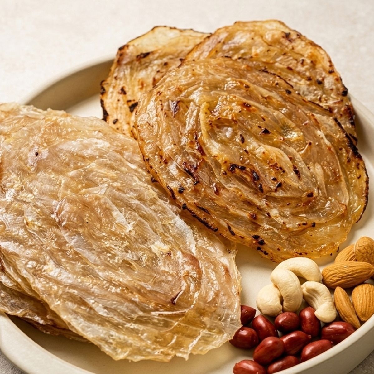 뼈를 잘 발라낸 쥐포라 부드럽고 두껍지 않아 질기지 않고 먹기 편해요. 달달한 끝맛이 일품이라 초간단 간식으로 즐기기에 좋아요.