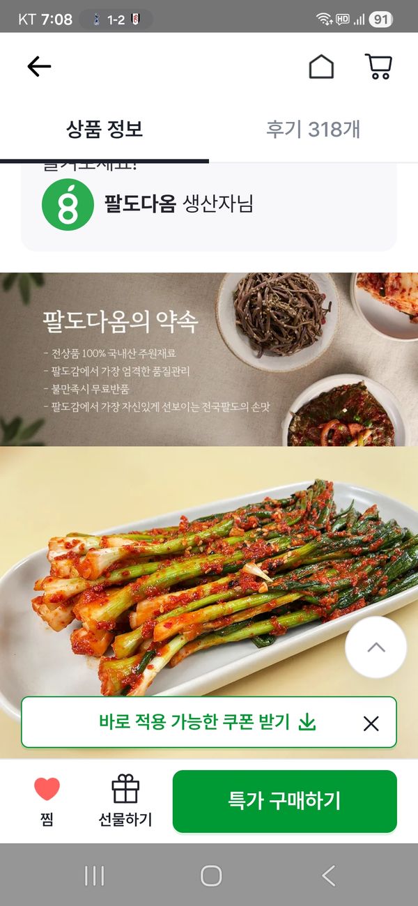 가족들이 평소에 쪽파김치를 좋아해서 이번에도 구매했습니다. 양념이 짜지 않고, 잘 어우러져서 맛있네요. 계속 단골하고 싶습니다.