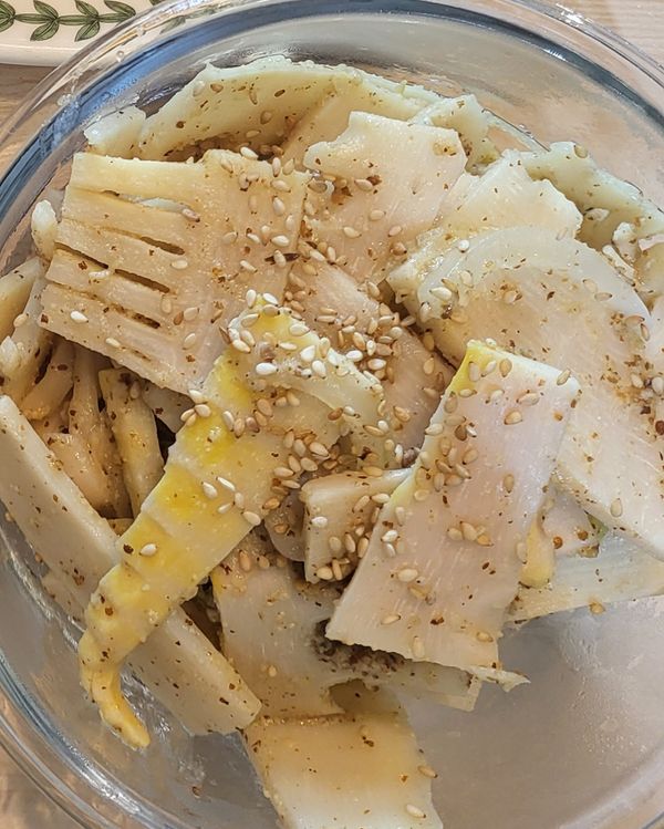 너무 맛있어요.고향 사천에서 재배된 죽순이라 그런지 더 맛있게 느껴지네요. 먼저 채 썬 죽순을 들깨가루 넣어서 볶아 먹었어요. 절로 건강해지는 느낌이었어요