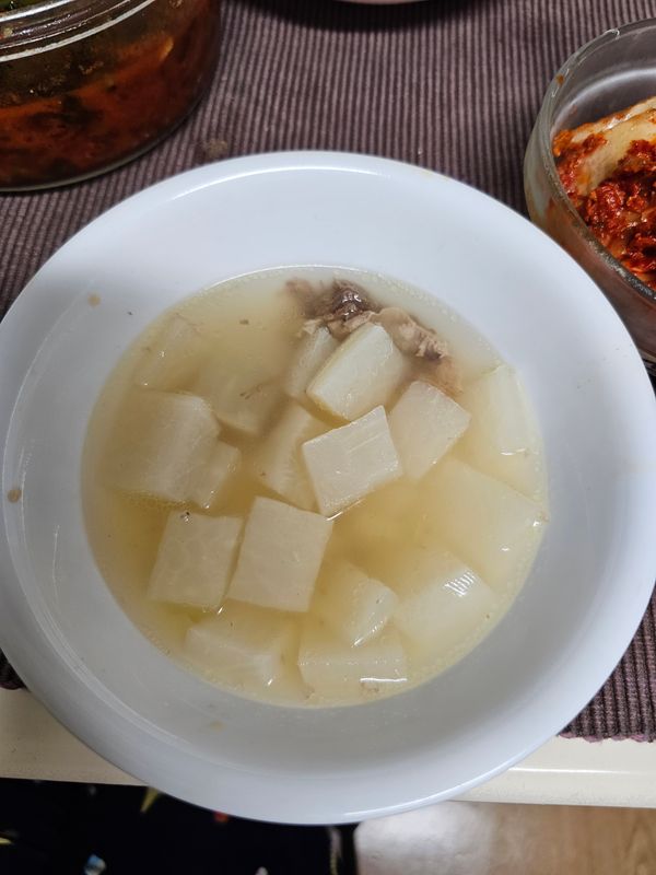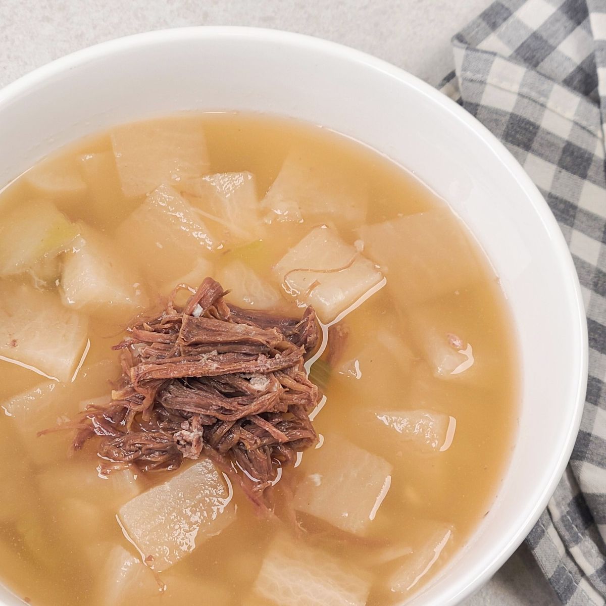 깔끔하고 맑은 국물 맛 좋은 소고기뭇국입니다. 자극적이지 않아 아침 식사로 드시기도 좋아요. 부드러운 소고기와 품질 좋은 달큼한 국내산 무를 숭덩 숭덩 썰어 넣었습니다. 합리적인 가격에 풍성한 양을 담아 드려요~