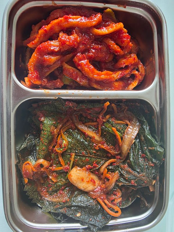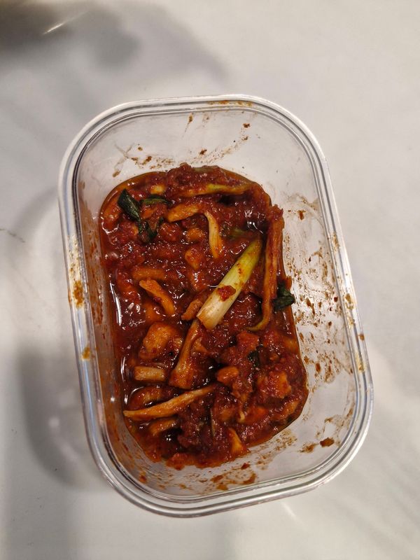 사실 그동안 구매한 제품들 중 무가 넘 매워서 구매할때마다 후회하는 제품이었는데 후기가 좋아 주문하게 되었습미다. 살짝 맛보았는데 다행이 무가 맵지 않아서 좋았습니다. 참기름과 깨소금 곁들였더니 더 맛있네요