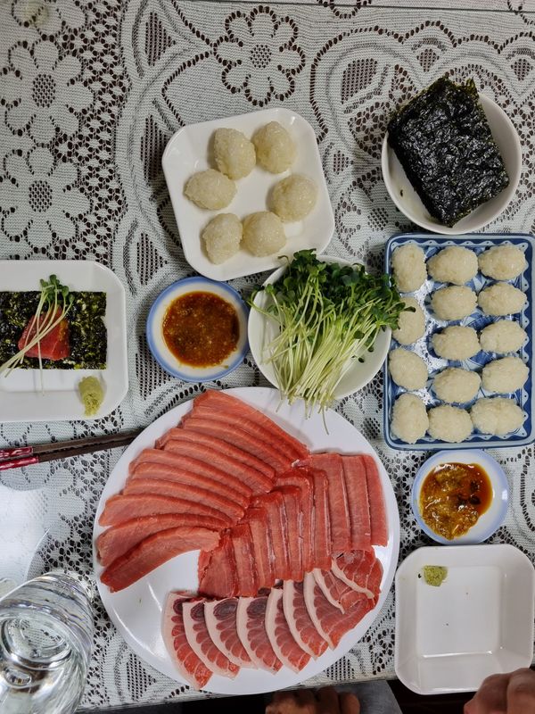 오랜만에 맛난 참치를 먹었네요. 초밥 밥도 만들어 둘이서 배부르게 먹었습니다. 명절 때 애들오면 또 시켜야겠어요.
