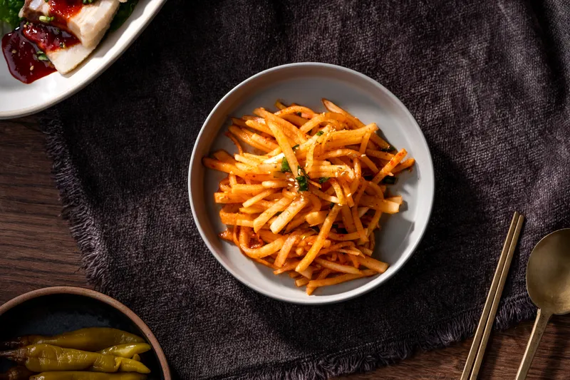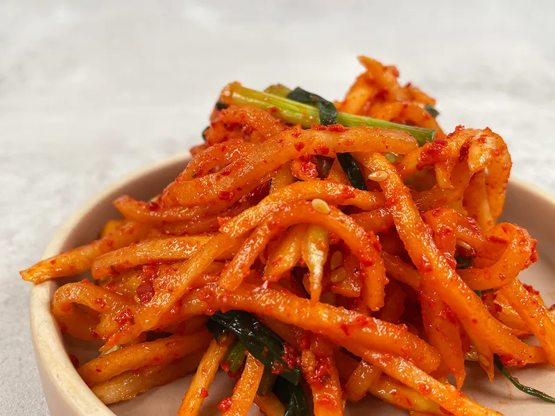 신선한 무와 질 좋은 젓갈, 국산 채소만을 사용해 만들었어요. 아삭아삭하고 시원한 감칠맛이 입맛을 돋워줘요.