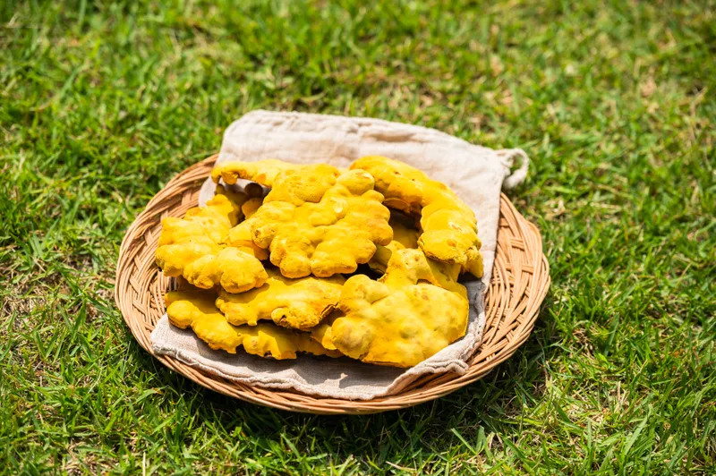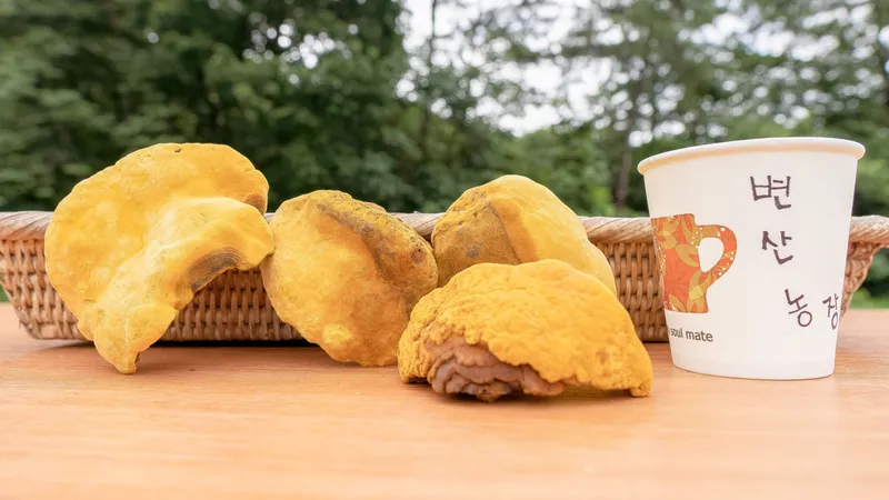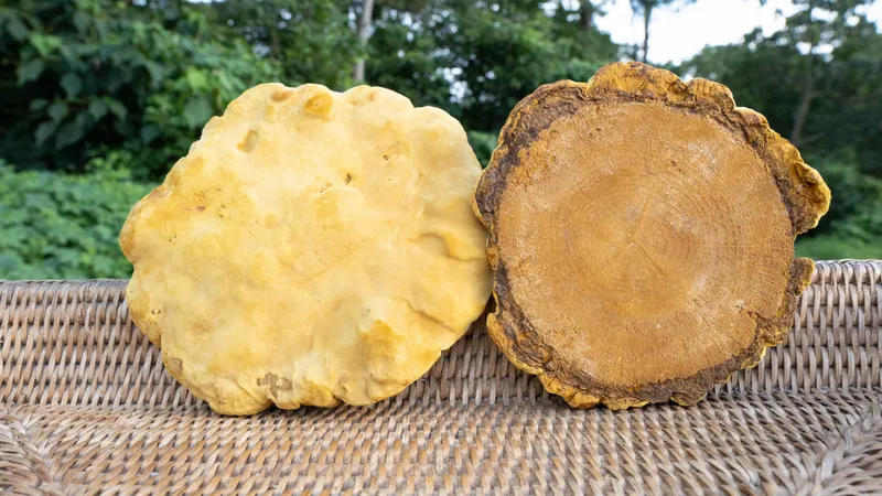 건강한 종목에서 재배해야 황금 빛깔의 상황버섯을 수확할 수 있어요. 옹이나 상처가 없는 최상의 참나무에서 생육한 품종이에요.