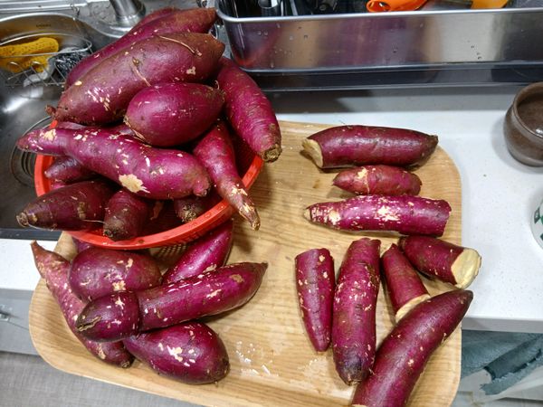 고구마가 부러진게 많네요 오른쪽 전부가 부러진 것입니다 특상 샀는데 속상하네요 씻으니 고구마 색깔은 제대로입니다