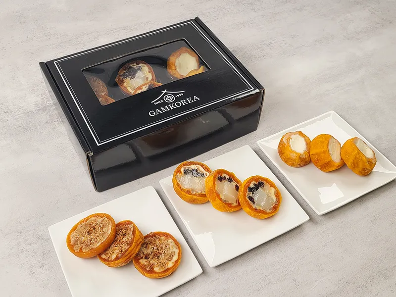 전통 곶감에 크림치즈와 그래놀라를 얹어 색다른 맛을 즐길 수 있습니다. 포근한 크림치즈의 풍미와 바삭하고 고소한 그래놀라의 조화! 달콤하고 부드럽고, 고소한 맛이 한데 뒤섞여 완벽한 조화를 이룬답니다.